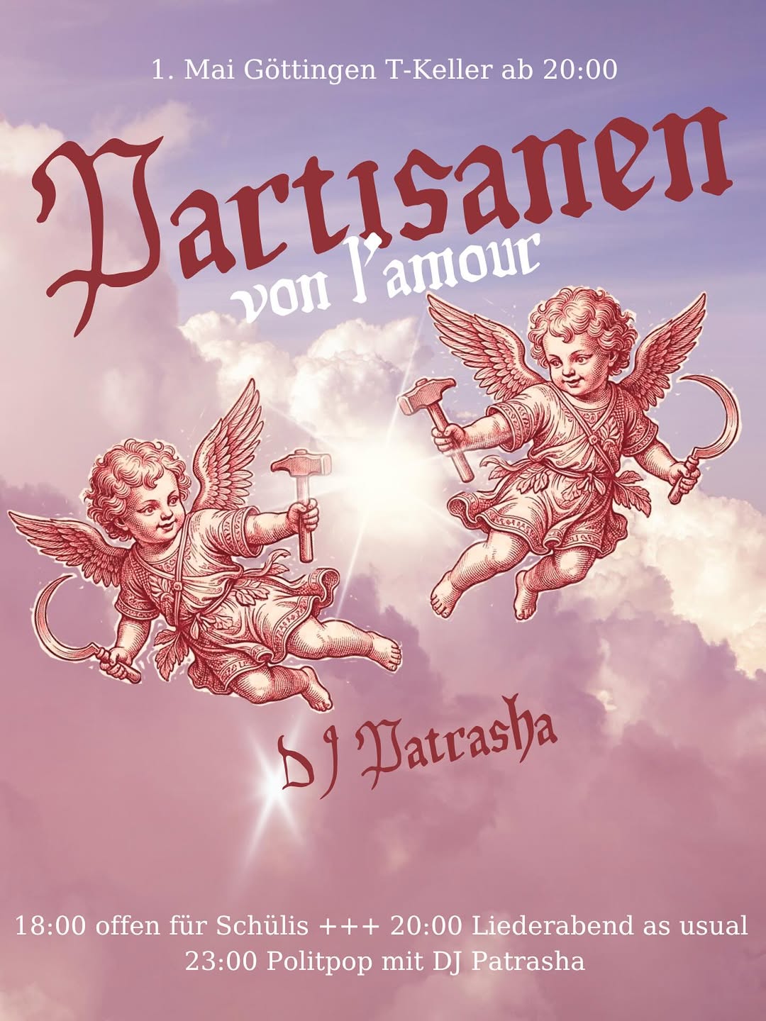 Nur noch einen Monat bis die Wir grüßen und küssen euch, Rotfront! Tour in Göttingen ist 💗 Das wird ein Fest, weil erstens macht der T-Keller für Leute U18 ausnahmsweise ab 18:00 seine Türen auf, zweitens kommen paar sweete Genoss*innen mit auf die Bühne und drittens hat @patrasha161 ein Set für die Afterparty vorbereitet. Wir freuen uns üüüüürre!